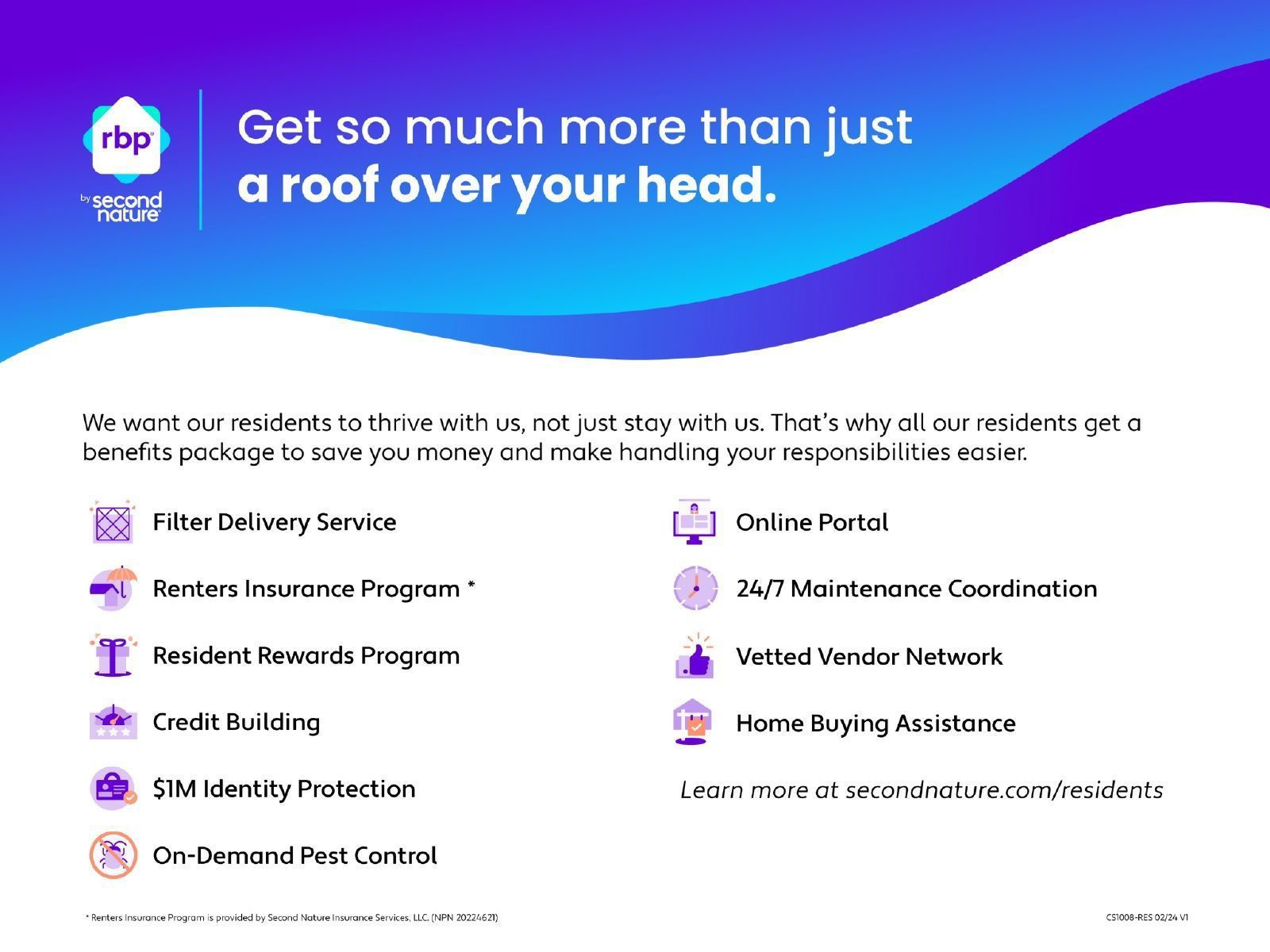All Hometown Properties of the Gulf Coast residents are enrolled in the Resident Benefits Package (RBP). RBP is $50 per month and includes liability insurance, credit building for on-time rent, up to $1M ID theft protection, HVAC filter delivery (where applicable), resident rewards, and on-demand pest control. More details provided with application.