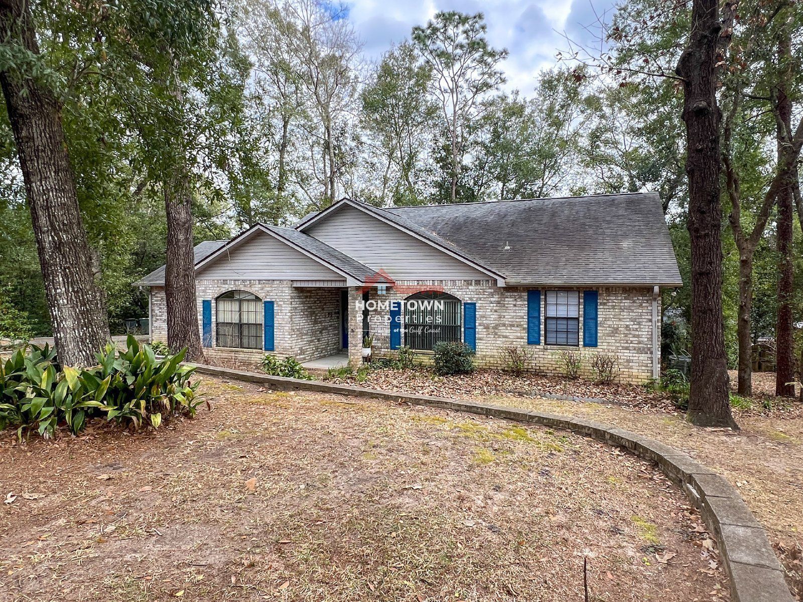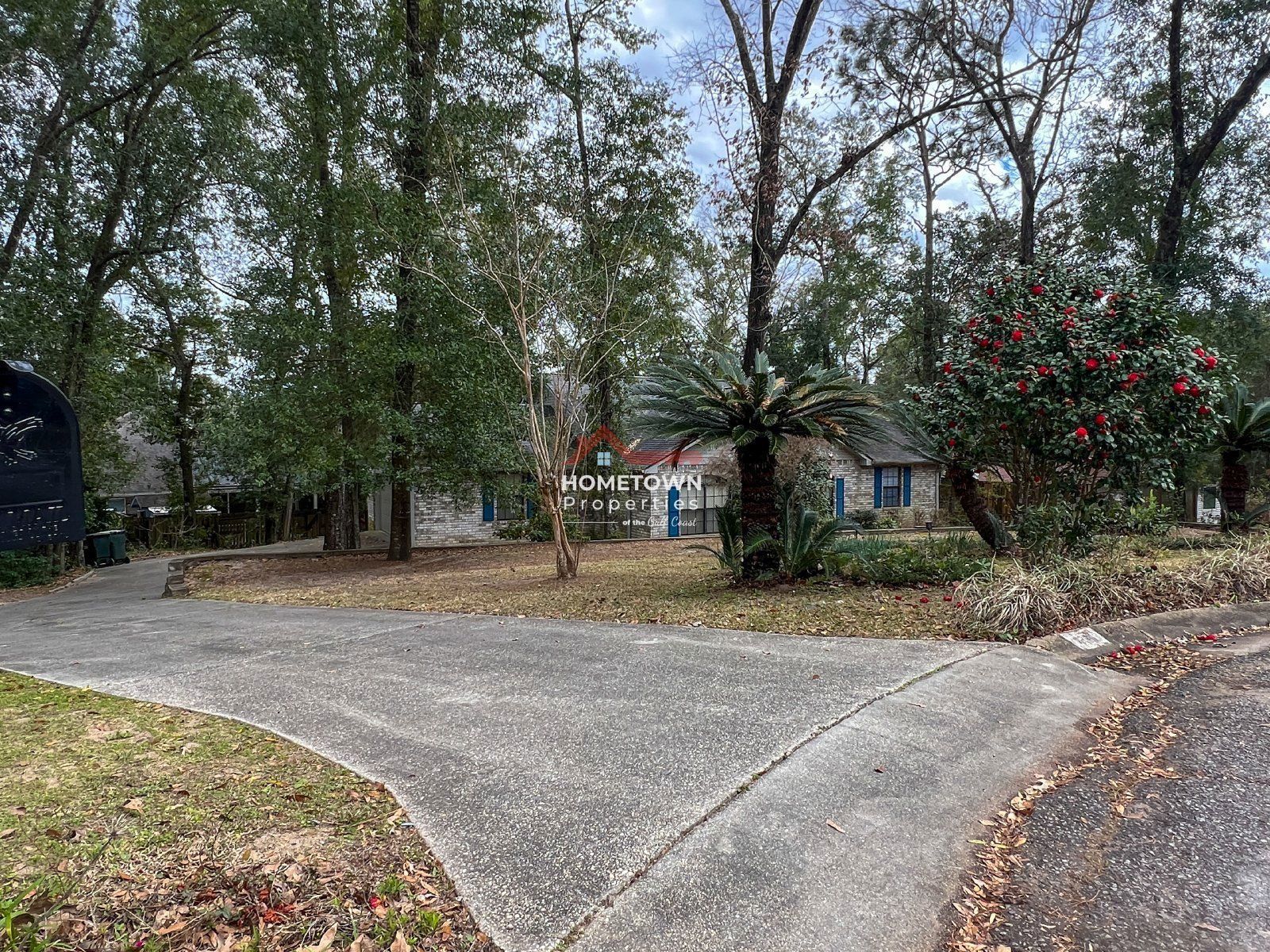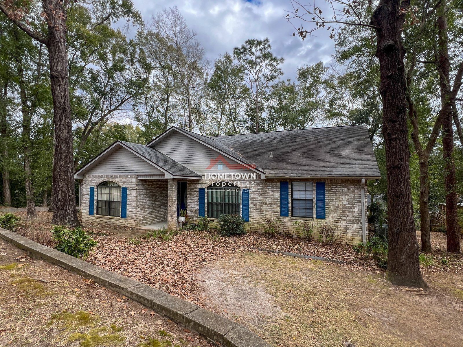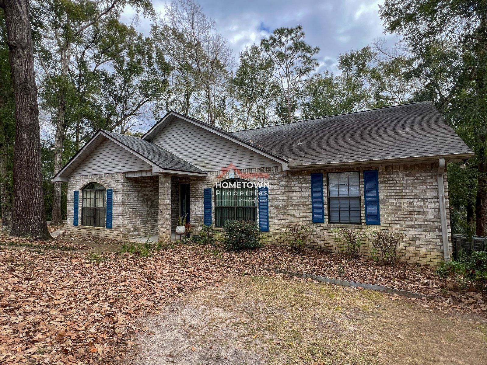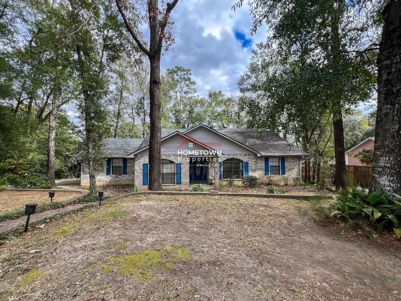 Half-acre lot with wood laminate flooring throughout and tile in the kitchen. The first two bedrooms are at the front of the home, along with a full bathroom. The primary suite is on the right side of the house, off the living room, with a walk-in closet and a full bathroom with a garden tub and standing shower.