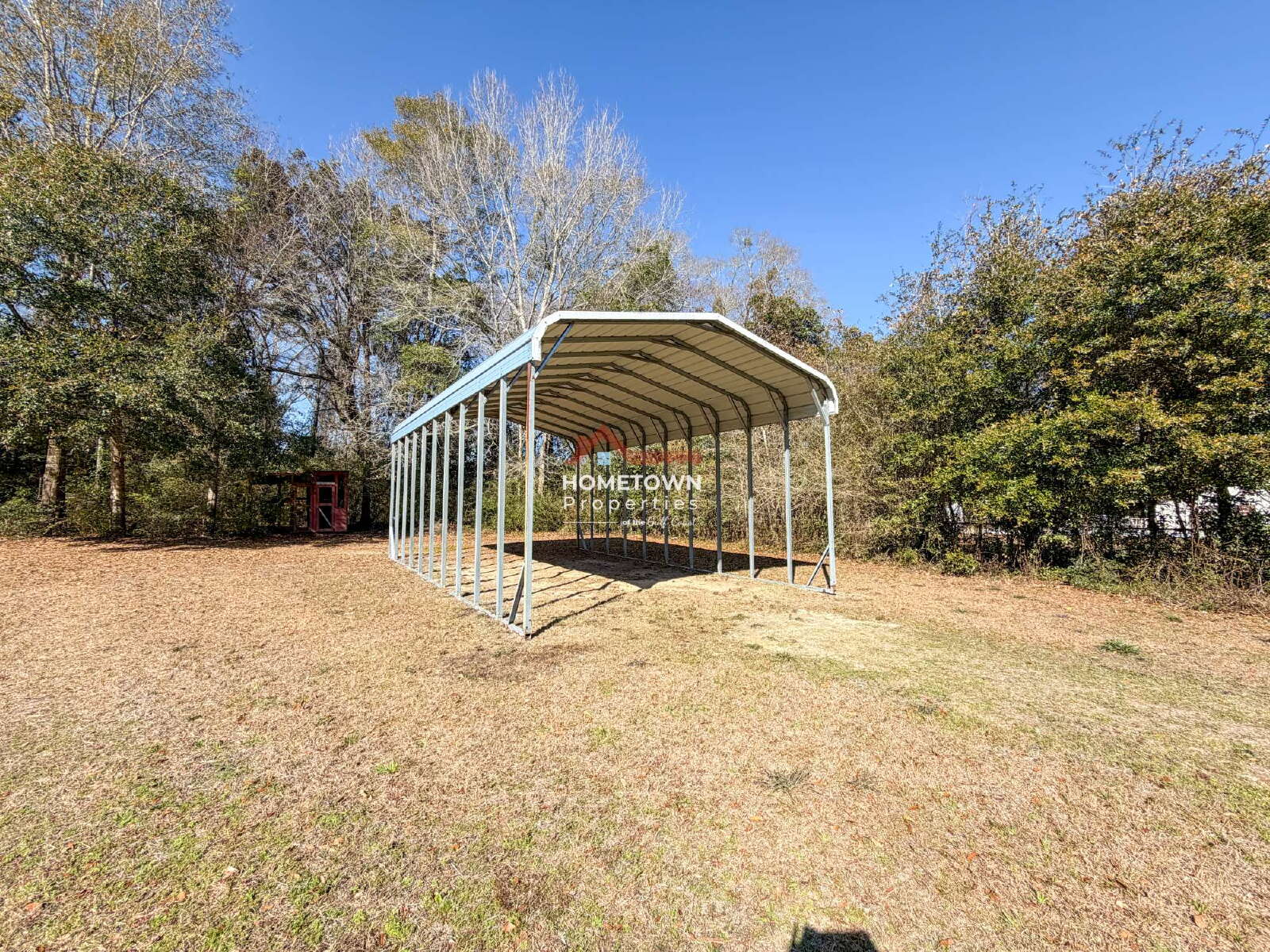 The pool is six feet deep on one end with LED lighting. There is a 16X32 covered storage. Pool service and Lawn Service is included.