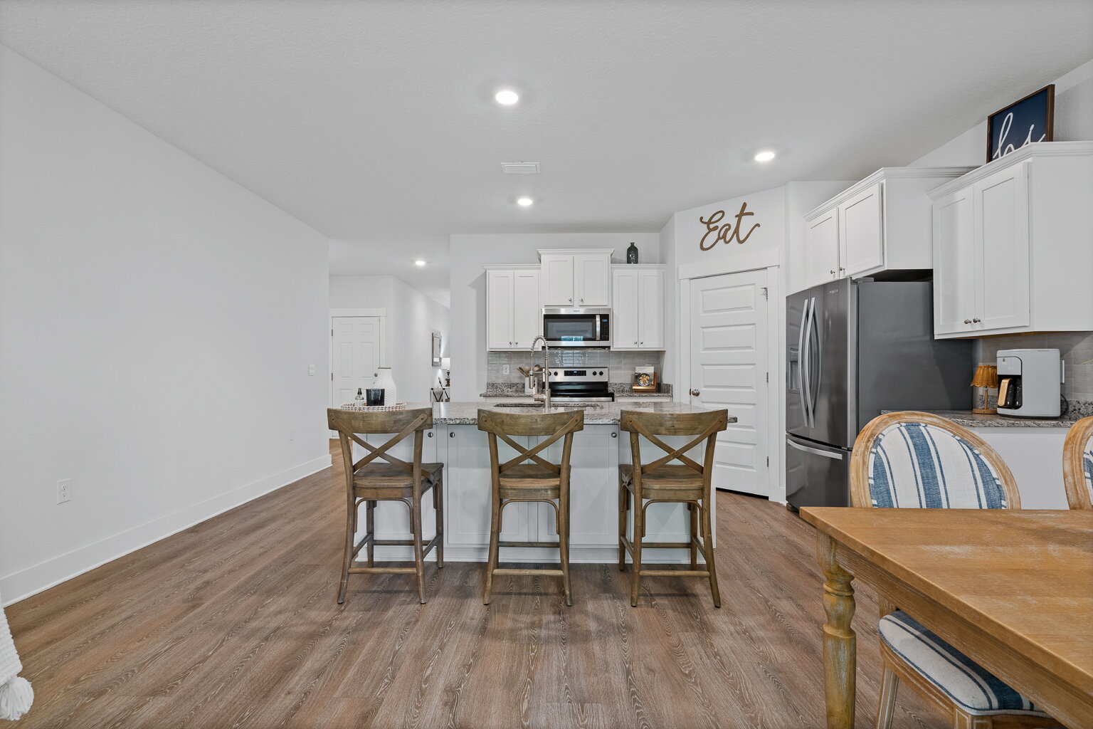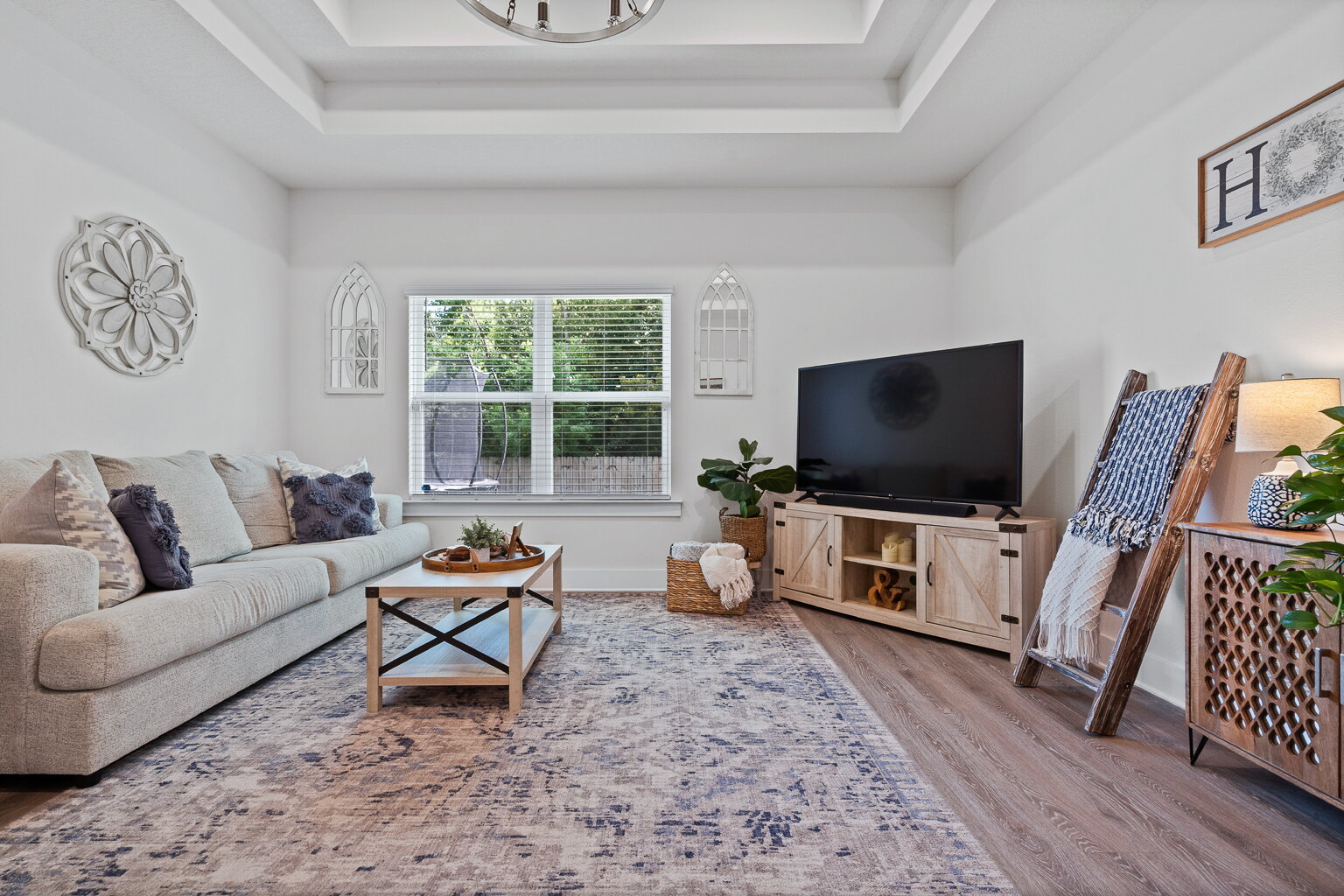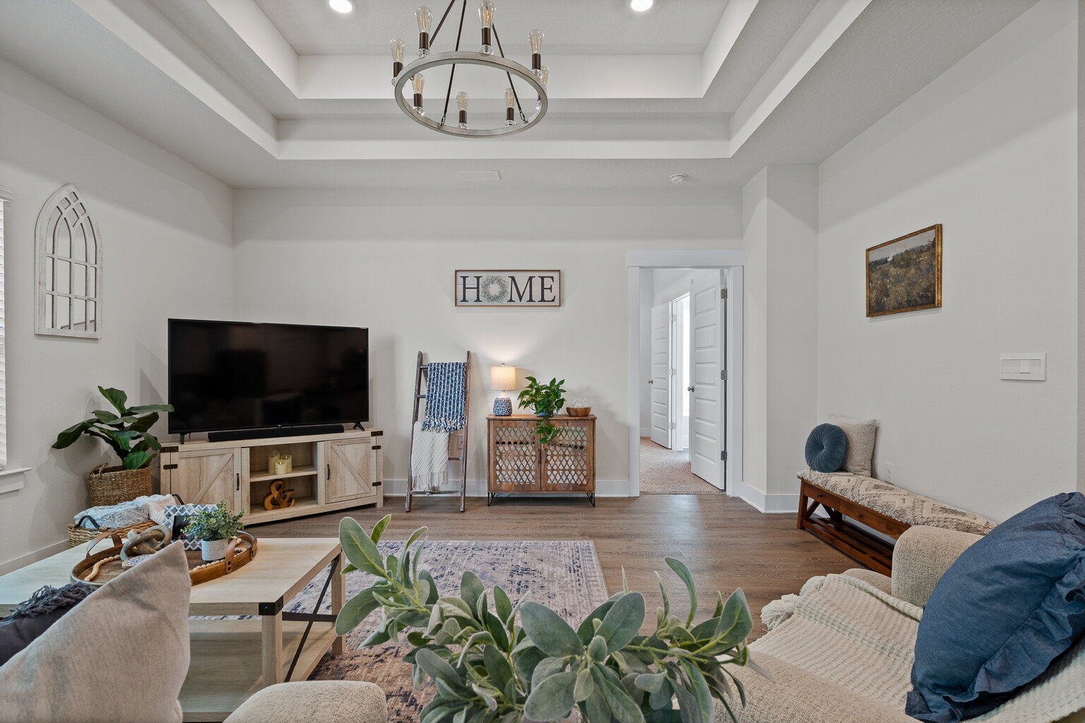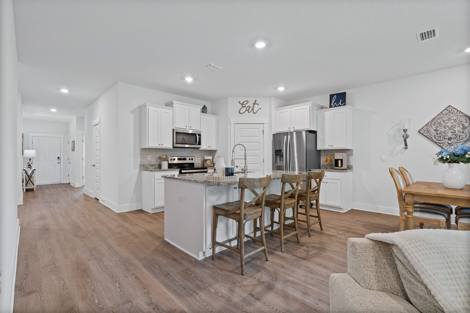 Four-bedroom, two-bath, two-car garage long-term rental home. As you enter the Rhett floorplan, the foyer leads to the open kitchen featuring a corner pantry and island that overlooks the dining and living room, leading to the outside covered porch for an extended living and entertaining space. The backyard is fully fenced. Available 11/24/2025