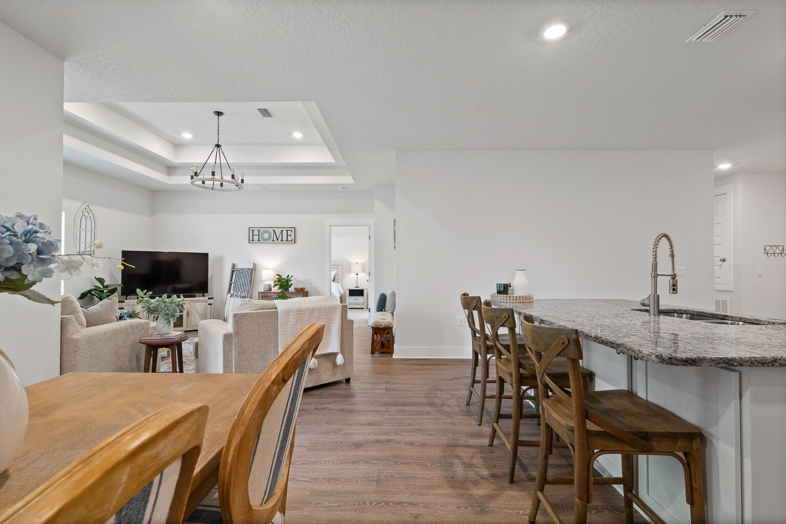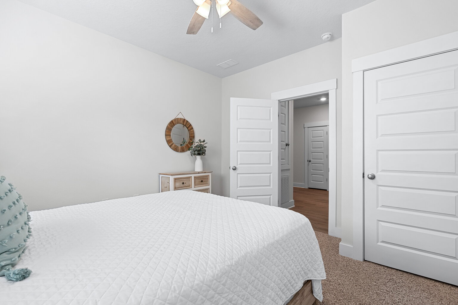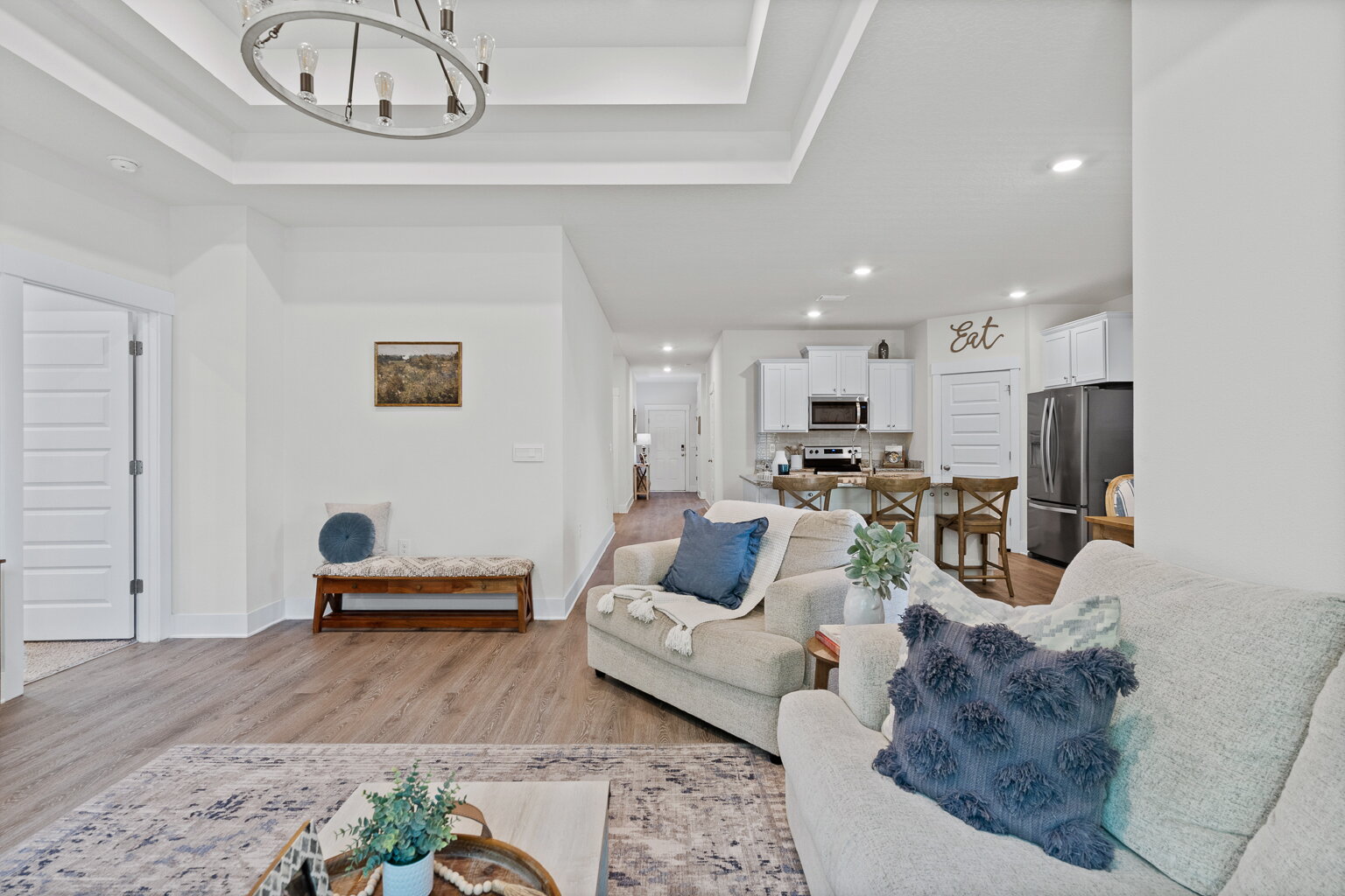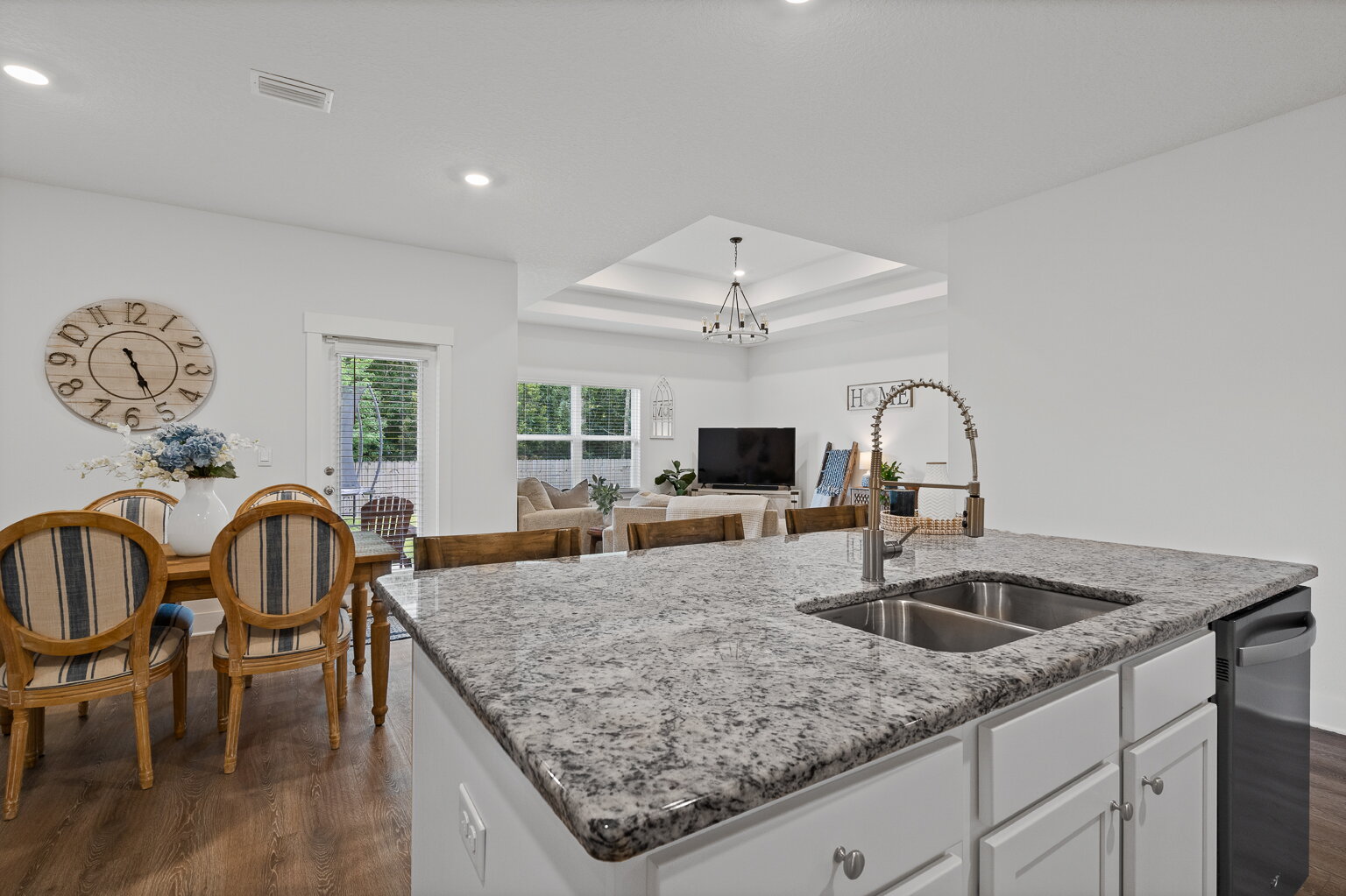 Four-bedroom, two-bath, two-car garage long-term rental home. As you enter the Rhett floorplan, the foyer leads to the open kitchen featuring a corner pantry and island that overlooks the dining and living room, leading to the outside covered porch for an extended living and entertaining space. The backyard is fully fenced. Available 11/24/2025
